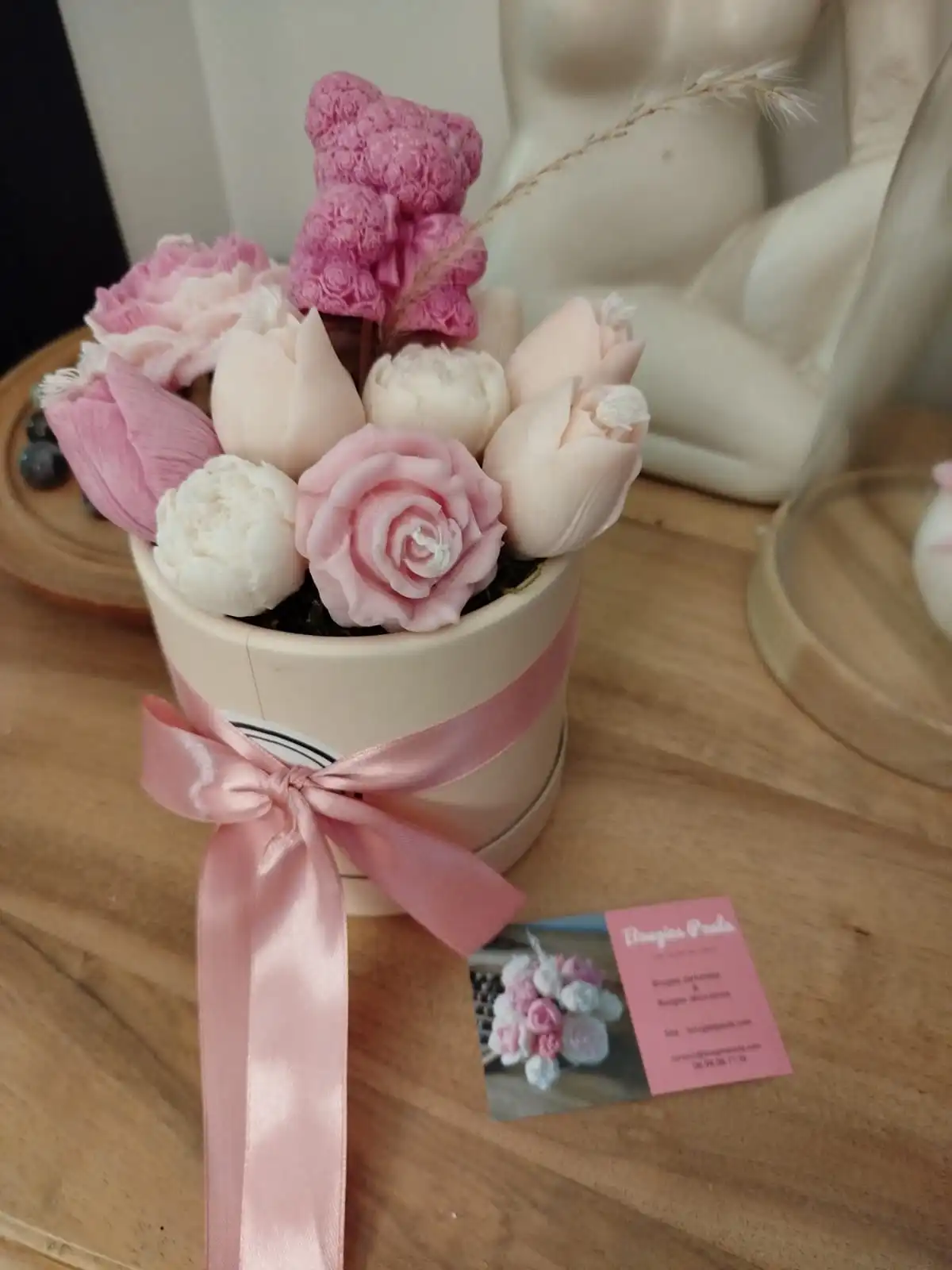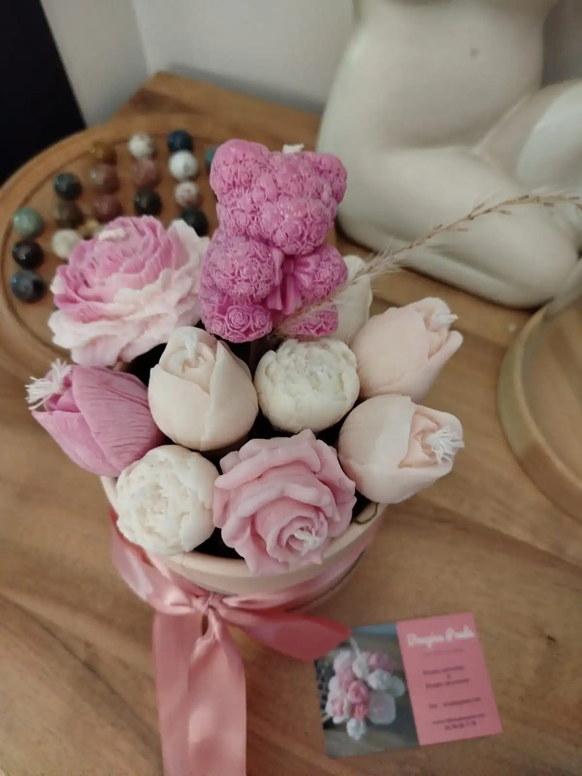 Ce joli bouquet de bougies roses allie la tendresse et la délicatesse. Enfin un bouquet qui ne fanera pas !