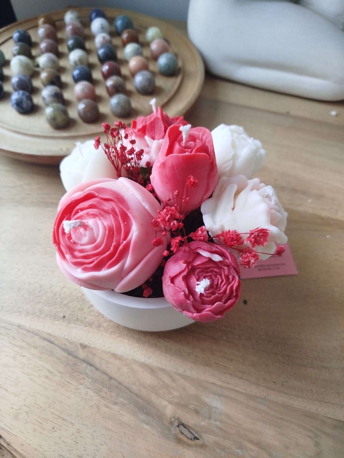 Bougie Florale – Teinte Rose Rouge Vibrante & Élégante